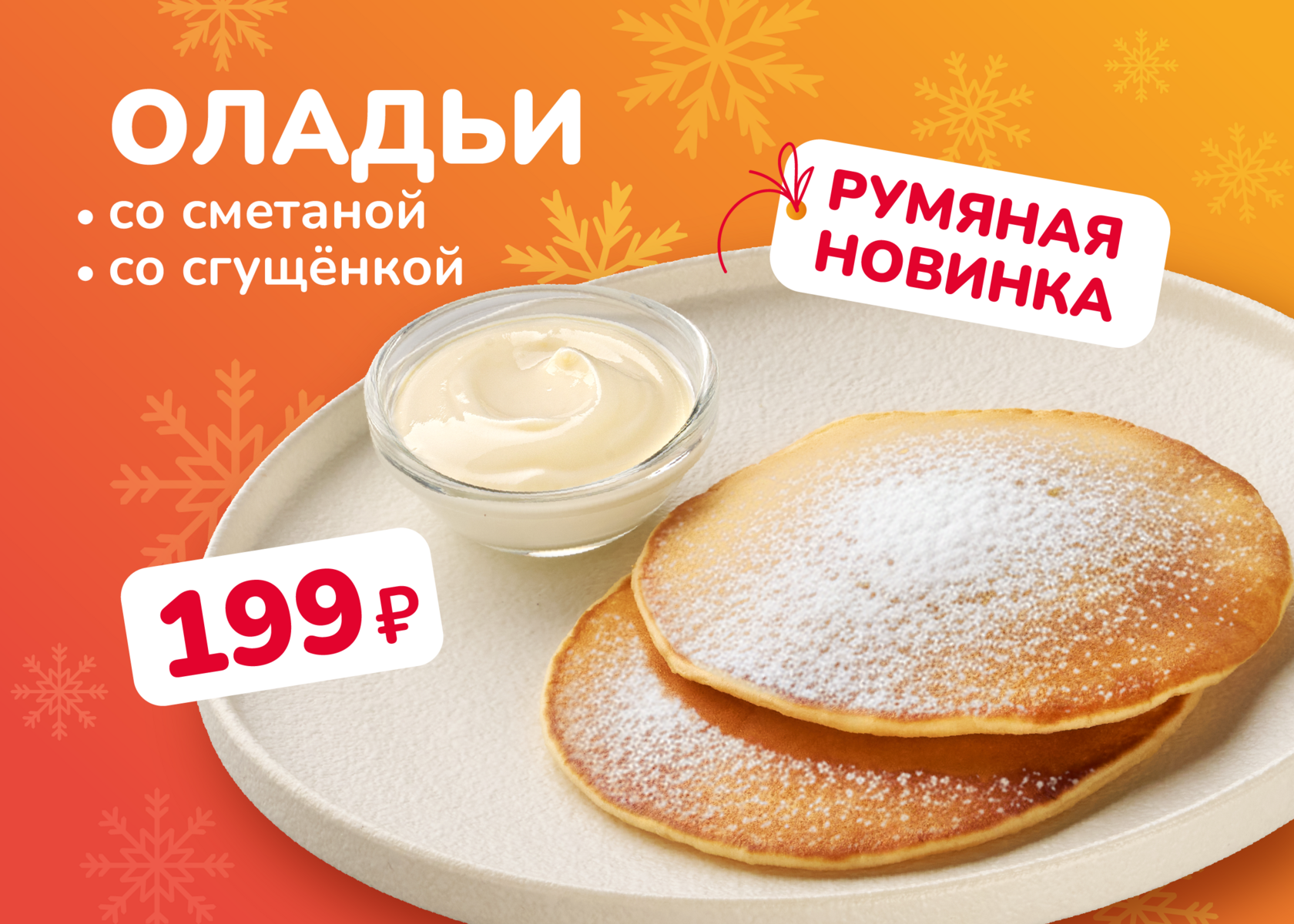 А у нас румяная новинка на завтрак! Пышные оладьи. С пылу с жару!